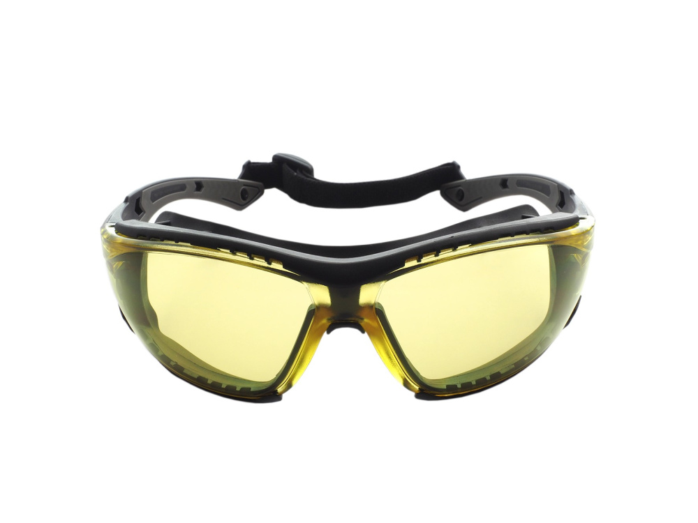 Очки с желтыми ударопрочными поликарбонатными линзами светопропускаемостью 89%.