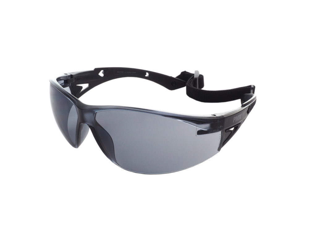 Очки c серыми ударопрочными поликарбонатными линзами светопропускаемостью 23%.
